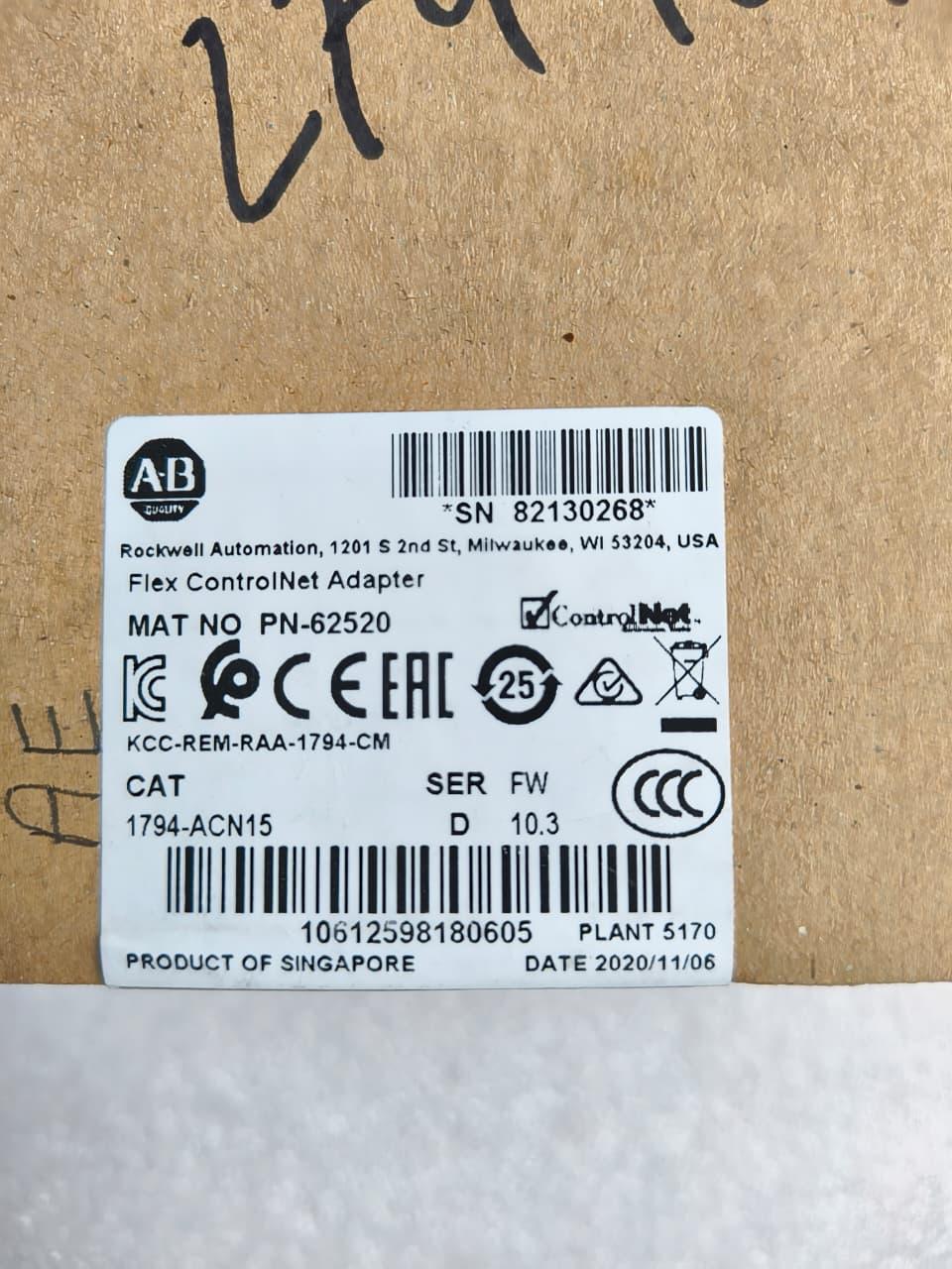 | Product Code | ALLEN-BRADLEY 1794-ACN15 ALLENBRADLEY 1794ACN15 FLEX CONTROLNET ADAPTER |
