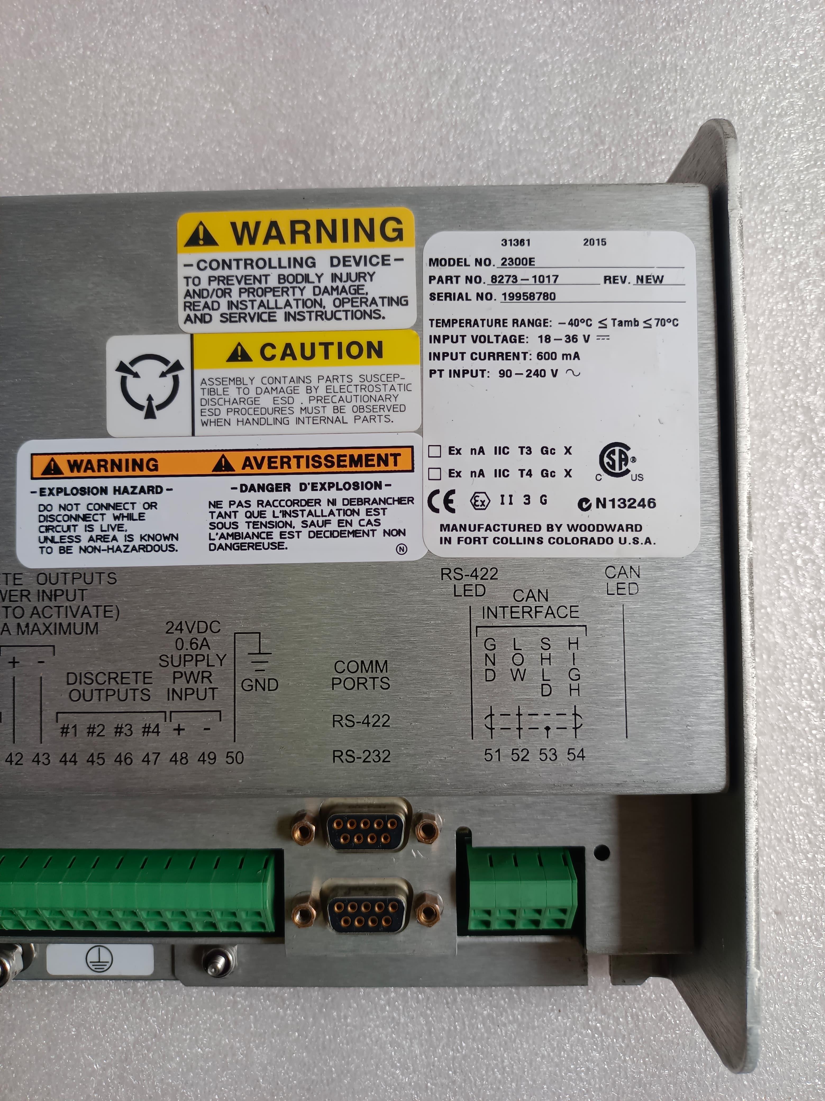 | Product Code | WOODWARD 8273-1017 WOODWARD 2300E LOAD SHARING&SPEED CONTROL TESTED OK |