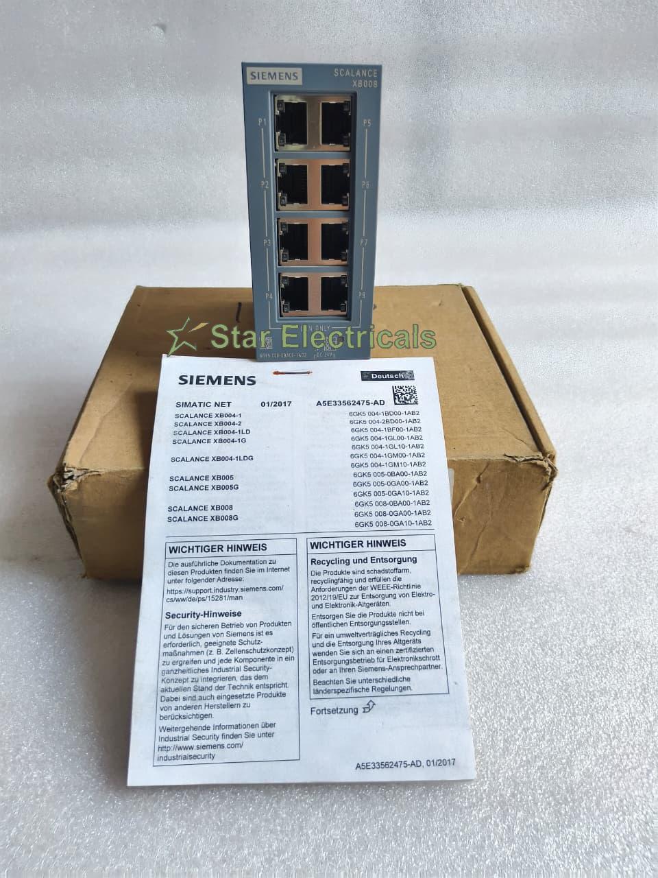 Siemens SCALANCE XB008 Unmanaged Industrial Ethernet Switch 8-Port RJ45 | 6GK5008-0BA10-1AB2 | DIN Rail Mount