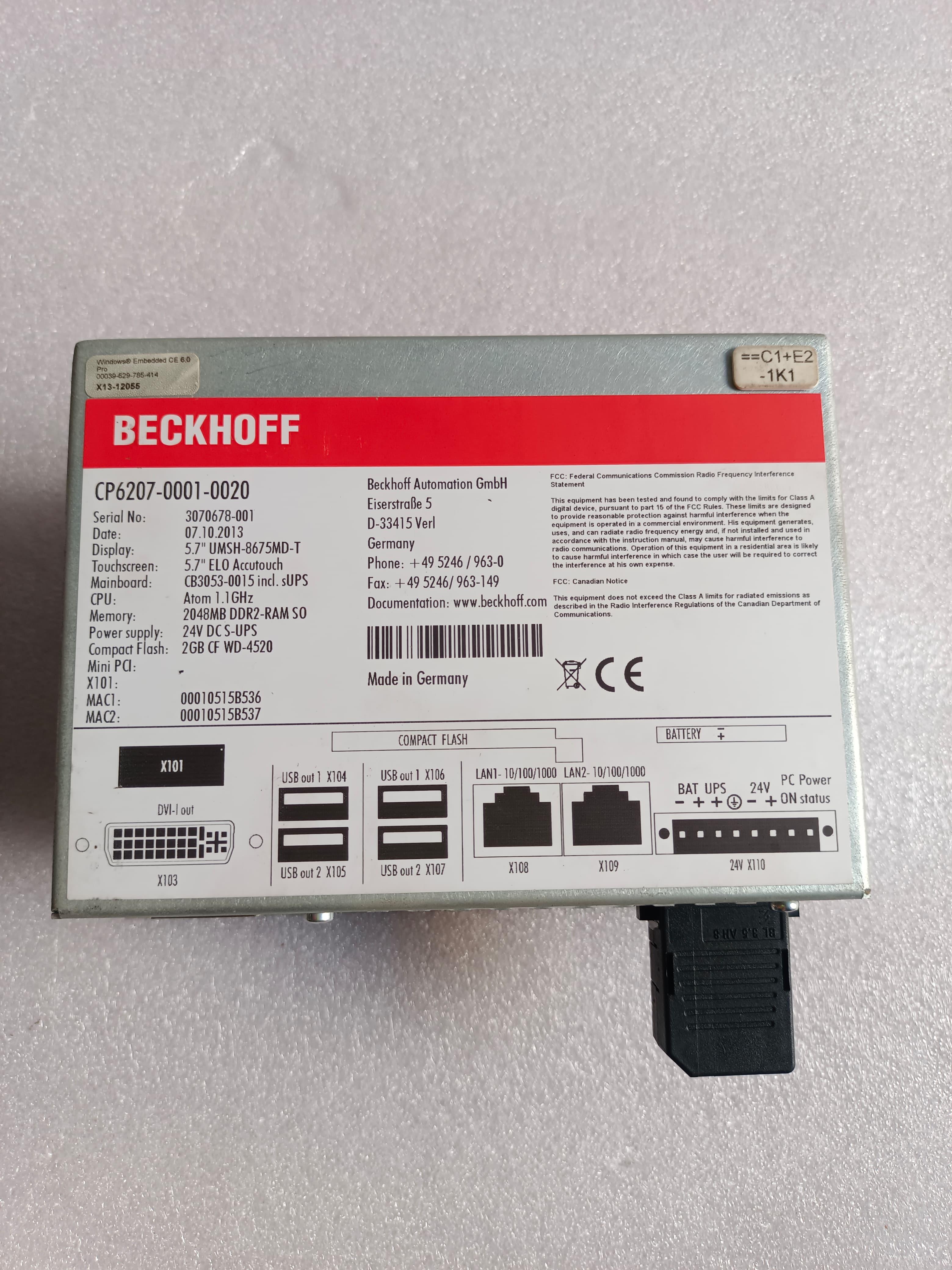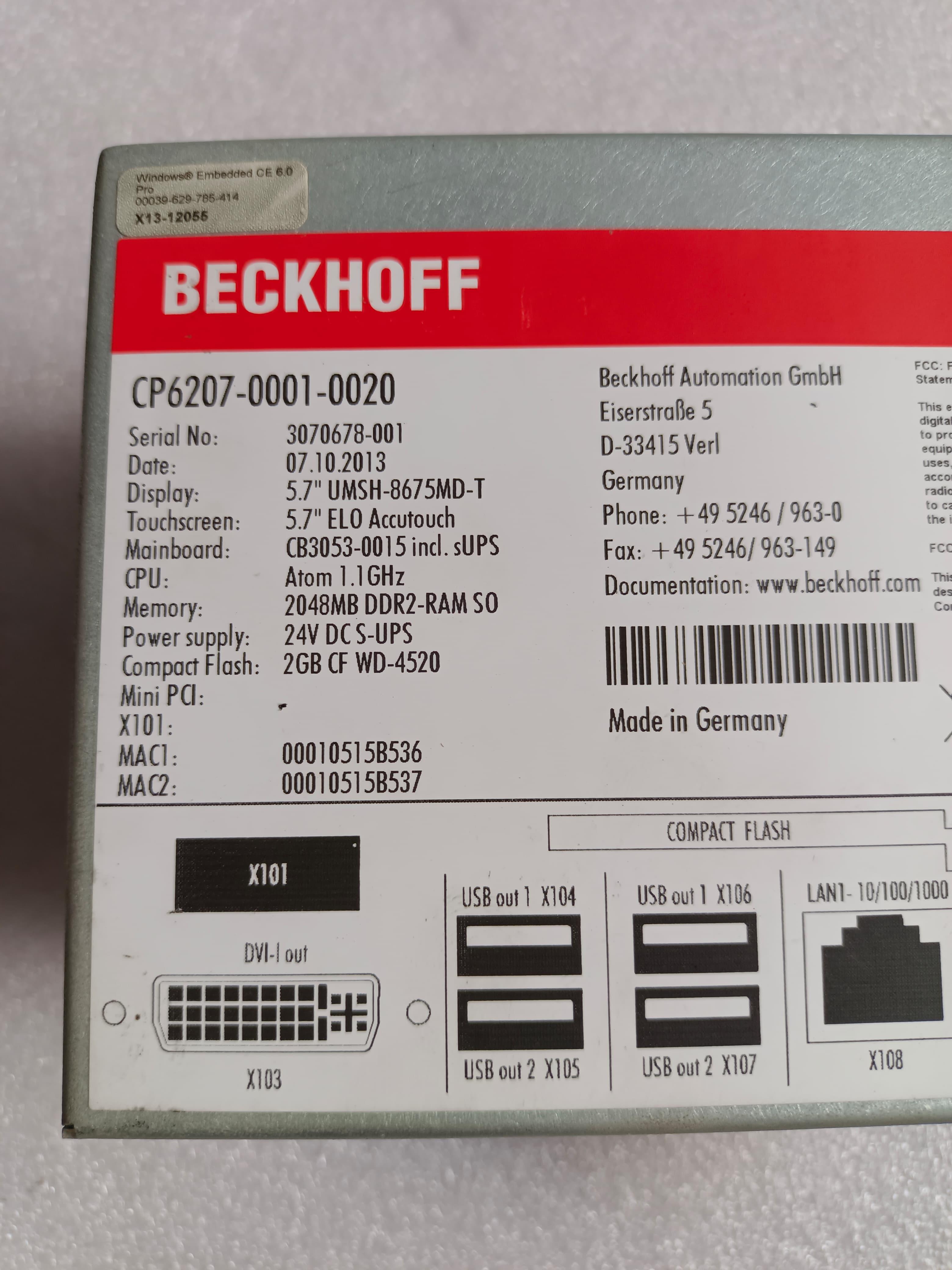 | Product Code | BECKHOFF CP6207-0001-0020 CP620700010020 HMI |