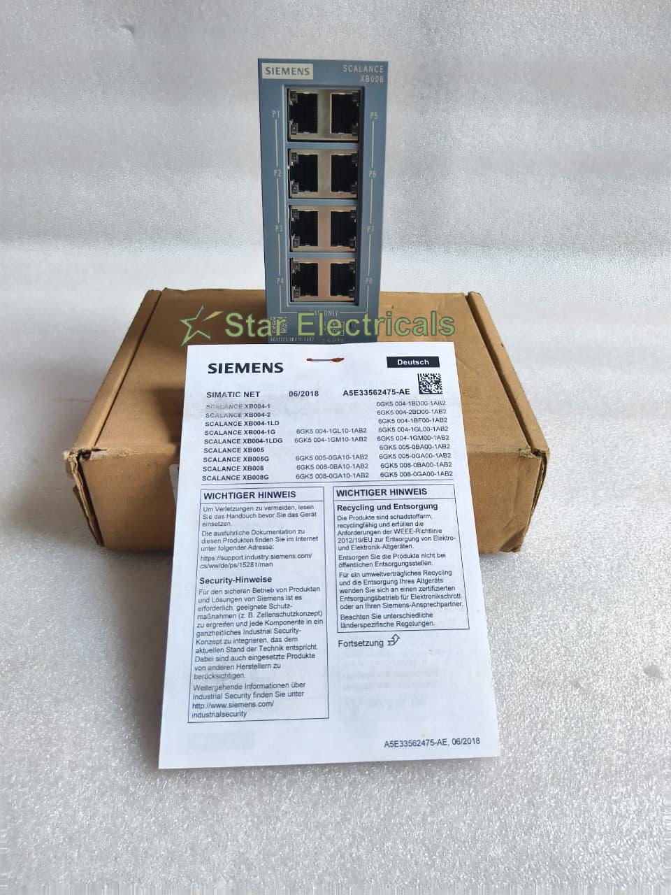 Siemens SCALANCE XB008 Unmanaged Industrial Ethernet Switch 8-Port RJ45 | 6GK5008-0BA10-1AB2 | DIN Rail Mount